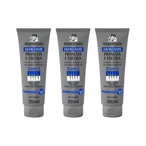Defrizante maxihair 250ml prancha e escova 3 em 1 - kit com 3un