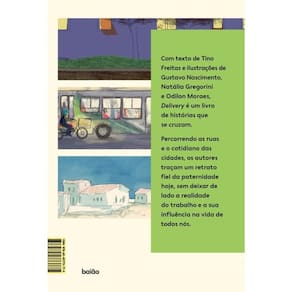 Com texto de Tino Freitas e ilustrações de Gustavo Nascimento, Natália Gregorini e Odilon Moraes, Delivery é um livro de histórias que se cruzam. Percorrendo as ruas e o cotidiano das cidades, os autores traçam um retrato fiel da paternidade hoje, sem deixar de lado a realidade do trabalho e a sua influência na vida de todos nós. Marca: BAIAO EDITORA