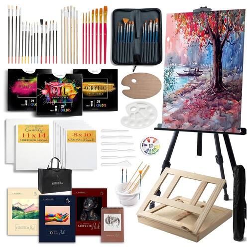 O CONJUNTO DE INICIALIZAÇÃO FINAL PARA ARTISTAS Pacote de Artes e Ofícios a Granel de 137 peças oferece todos os suprimentos, acessórios e ferramentas essenciais necessários para você pintar obras primas em óleo, acrílico e aquarela impressionantes Conjunto de pintura profissional perfeito para artistas iniciantes, intermediários e avançados, incluindo crianças, adolescentes, adultos e idosos CABECAS DE CAMPO E MESA DE ALTA QUALIDADE Liberte sua imaginação em praticamente qualquer ambiente Kit Inclui Cavalete de Campo de Ferro Leve Preto com Pernas Ajustáveis e Cavalete de Mesa de Madeira Adaptável com Gaveta Organizadora Integrada para zenamento. Pratique sua arte confortavelmente em casa, escola, aula de arte, fora e em movimento 72 CÂMARAS DE TINTA COLORIDAS COM PALETAS Experimente todos os principais meios graças aos 3 conjuntos de tinta de espectro total com 24 tubos de 12 ml de cores acrílicas, óleo e água. Tubos de tinta chegam perfeitamente embalados em suas respectivas caixas para zenamento limpo e fácil acesso. Também inclui paletas de madeira e 10 poços de plástico para mistura MUITO PAPEL, LONAS E ESCOVAS Escolha entre 6 telas de painel de qualidade profissional 20 x , 2 telas esticadas de 27 x e dezenas de opções de bloco de papel e livro de esboço projetadas para cada tipo de tinta Os artistas também gostam de 40 pincéis de pintura individuais, abrangendo cada tamanho, formato de cerdas, material e estilo de cabo exclusivos Marca: Não Informado