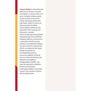 Esse livro é fruto de escuta realizada durante os 20 anos em que a autora atuou na educação infantil. Pesquisas indicam que, historicamente, bebês negros ganharam e ganham menos colo e precisam ser mais independentes, uma vez que suas presenças são ostracizadas em instituições educacionais. A obra faz uma convocação para que o colo seja direito de bebês e crianças negros, migrantes, indígenas, brancos e traz possibilidades de caminhos, reflexões à implementação da Lei n. 10.639/2003, que assevera o ensino da história e cultura africana e afro-brasileira. Cenas reais do cotidiano e pedidos de mães negras compõem esse texto, que espera contribuir para a formação continuada de educadores de espaços formais e informais, mães, pais, familiares e pessoas comprometidas com a formação antirracista e a construção de uma sociedade mais justa e equitativa.