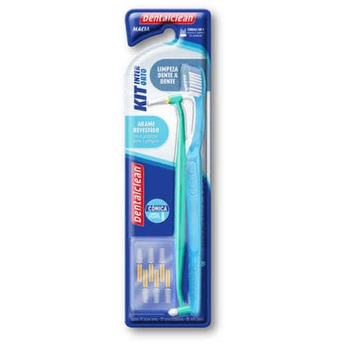 Dentalclean: Kit Interorto O Kit Inter Orto Dentalclean é composto por uma escova , com cerdas em V para maior eficiência na hora da escovação de dentes com , uma unidade da escova Interdental com Refile uma caixa de refis. O kit é uma solução prática e completa da higiene de aparelhos dentais. Cores disponíveis Escovas :Verde água Cabeça:30 Ficha técnica - Quantidade: 1 Medidas aproximadas do produto - Comprimento: 15 cm - Altura: 15 cm - Largura: 15 cm - Peso: 600 g