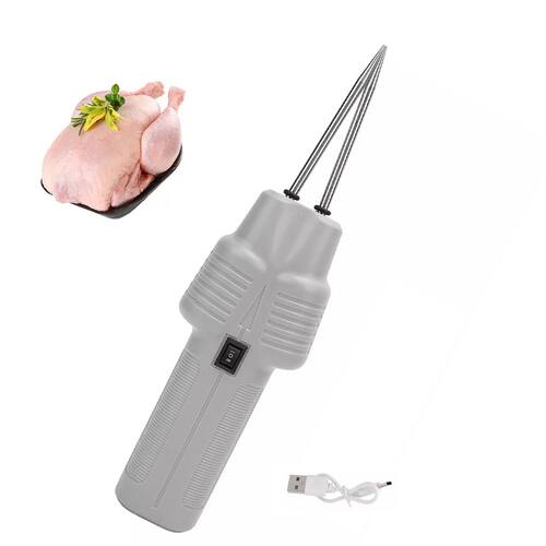 É portátil, possui cabeçote de alta fricção, ajuste automático de aperto, rotação de alta velocidade, depenagem rápida, sem danos à carne.