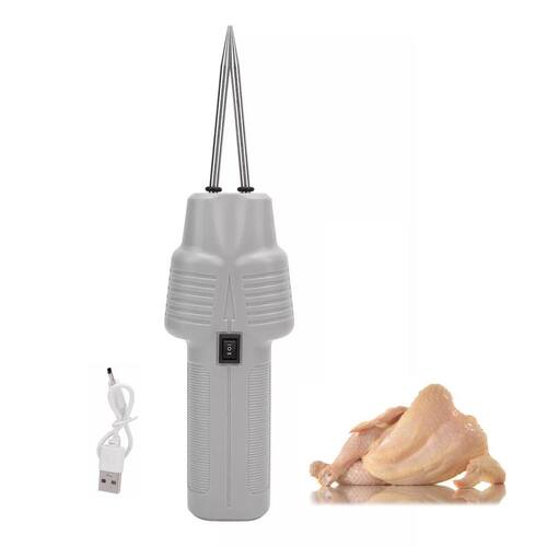 É portátil, possui cabeçote de alta fricção, ajuste automático de aperto, rotação de alta velocidade, depenagem rápida, sem danos à carne.