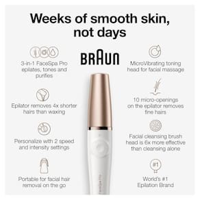 Depiladora facial Braun Facespa Pro 911, depilação facial para mulheres, dispositivo de depilação, depilação 3 em 1, escova de limpeza e tonificação da pele com 3 extras - DEPILAÇÃO FACIAL: o primeiro dispositivo de depilação facial, limpeza e tonificação da pele do mundo (melhor aplicação do produto para a pele do que o manual) - TEZ CLARA: A depiladora facial remove pelos 4 vezes mais curtos do que a cera para uma pele lisa e clara - PELE PURIFICADA: Escova de limpeza facial para pele purificada, limpa 6 vezes mais eficazmente do que a manual (em bases à base de óleo difíceis de remover) - PELE APRIMORADA: Cabeça tonificante de microvibração para melhorar a aparência da pele — RECARREGÁVEL: dispositivo recarregável — inclui 3 extras: boné de bronze, suporte e bolsa