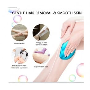 2 x Depiladora de vidro removedor de cabelo sem dor Esta ferramenta de depilação é feita de plástico e vidro de alta qualidade, com uma superfície lisa, segura e confiável e pode ser com confiança. Simples e conveniente de usar, diga adeus aos métodos tradicionais de depilação, adequados para todos os tipos de pele. Adequado para depilação em todos os tipos de pele ao redor do corpo, incluindo rosto, braços, axilas, linha do biquíni, pernas, costas e peito. Deixa a pele limpa, macia e macia. Pequeno e compacto, fácil de transportar. Não ocupará muito espaço em uma bolsa ou mala durante a viagem. Esta ferramenta de depilação indolor é um excelente presente para familiares, amigos e colegas em festivais especiais, como Dia de Ação de Graças, aniversários, etc. Características:\ n\ nFerramentas de beleza reutilizáveis seguras para depilador, removedor de pelos para corpo e axila\ n\ nAviso: para medição manual, permita um erro de 1-3 cm\ nTamanho: 11* 7* 2,5 cm\ nCor: azul, dourado, roxo\ nMaterial: plástico + vidro\ n\ nO pacote inclui:\ nUse a etapa de depilação 1. Tente usar a depiladora quando a pele estiver seca após o banho. Cultive e polir suavemente e rapidamente uma área pequena, não empurre ou puxe uma área grande para evitar ferimentos.2. O produto gira um pouco mais na pele. Eu sugiro que você seja paciente e continue moendo o produto de depilação por pelo menos um minuto sem soltá-lo da pele (mas não duro). E então o efeito suave é imediato e o cabelo cai. Aplique um creme na pele após a depilação para aliviar a irritação.4. Não o use em áreas vulneráveis, como axilas, área do biquíni, etc.