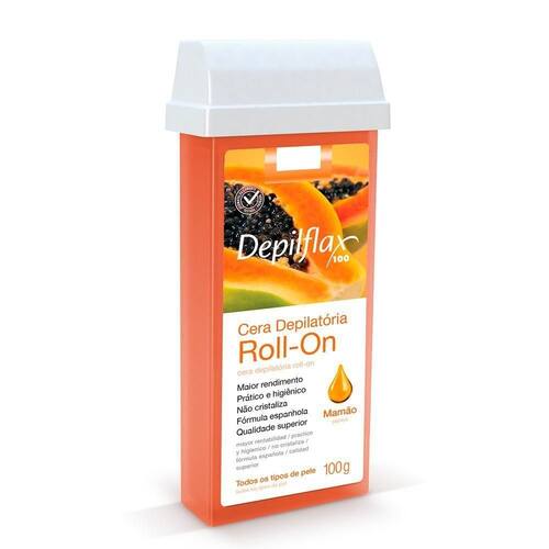 01 - Cera Refil Roll On Mamão Depilflax - 100g.