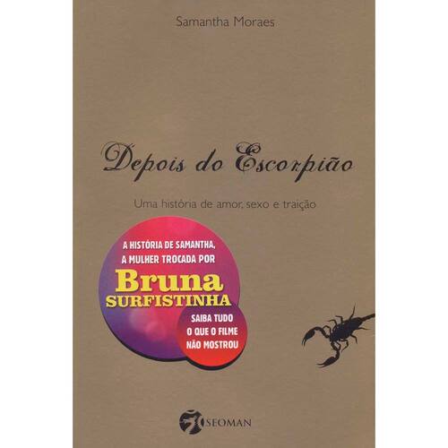 Perder o marido para outra mulher é algo muito sofrido. Imagine então se essa mulher fosse a ex-garota de programa mais conhecida do Brasil. Após seis anos de casamento, foi exatamente isso que aconteceu com Samantha Moraes. Seu marido saiu de casa para viver com Bruna Surfistinha e deixou para trás uma esposa arrasada e duas filhas pequenas. No livro Depois do Escorpião - Uma história de amor, sexo e traição, Samantha Moraes conta sua história desde o início, quando conheceu seu ex-marido aos sete anos de idade. Fala sobre como descobriu a traição através de um fio loiro de cabelo e como está hoje, quando deu a volta por cima e conseguiu se recuperar da separação. Seu livro é uma verdadeira lição de vida para inspirar outras mulheres que temem passar ou passaram pela mesma situação. E, é também um desabafo bem-humorado de uma mulher batalhadora, bonita e inteligente.