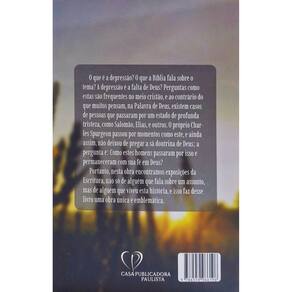 SINOPSE Ao contrário do que muitos pensam, na Palavra de Deus existe casos de pessoas que passaram por um estado de profunda tristeza, Salomão, Elias, e outros; próprios Charles Spurgeon, passou por momentos como este. Portanto nesta obra encontraremos exposições da Escritura, não só de alguém que fala sobre um assunto, mas de alguém de viveu está história, e isso faz de livro uma obra única e emblemática.
