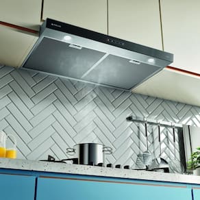 Compatível com fogões de 4 e 5 bocas, possui 80 cm de largura, 3 velocidades, 124 watts de potência total e 390 m/h de capacidade de sucção. Conta também com 2 lâmpadas de LED de 2 watts de potência cada e filtros de alumínio lavável e carvão.