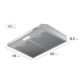 Prepare suas refeições em um ambiente mais agradável com o Depurador de Ar Electrolux 60 cm Inox Alto Poder de Sucção, Luz LED e Filtragem Dupla (DE6SS). Com seu Alto Poder de Sucção, este produto elimina a fumaça e retém partículas de gordura com eficiência. Graças à sua vazão de 200 m³/h, sua cozinha fica livre de fumaça e odores indesejáveis com a renovação do ar em menos de 6 minutos¹. O Design Moderno é pensado para dar mais personalidade à sua cozinha, sem ocupar muito espaço e com fácil instalação. Além disso, o acabamento é feito com materiais de alta qualidade, o que previne corrosão e manchas, mantendo o depurador novo por mais tempo. Para deixar seus momentos na cozinha mais prazerosos, a Iluminação de LED mantém as cores dos alimentos mais naturais e com um aspecto mais saboroso², auxiliando na hora do preparo. O segredo da eficiência deste depurador está no processo de Filtragem Dupla. Os filtros de alumínio retêm até 60%³ de gordura, são removíveis e podem ser lavados em água corrente ou até em lava-louças. Já o filtro de carvão ativado, mantém sua cozinha livre de odores indesejados. Além disso, o produto tem 3 velocidades, que podem ser ajustadas de acordo com sua receita, garantindo maior eficiência do depurador. O Depurador de Ar Electrolux 60 cm Inox Alto Poder de Sucção, Luz LED e Filtragem Dupla (DE6SS) é ideal para fogões e cooktops de 4 bocas. ¹ Testes realizados de acordo com a IEC 61591, em uma cozinha de 10 m², com um pé-direito de 2,5 m, podendo variar conforme o ambiente. ² Testes internos realizados para comparar a lâmpada de LED de 6.000 K com uma lâmpada de LED Electrolux de 3.000 K. ³ Resultados obtidos em testes internos realizados no modelo DE8TB de acordo com a IEC 61591.