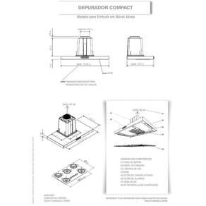 Instalação apenas de Embutir Observação, este modelo deve ser embutido em armário aéreo, acima do cooktop fogão, o depurador é fixado por parafusos no próprio móvel