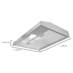Ficha Técnica Marca Suggar Modelo DPS16 Tipo Depurador Indicado para fogões 4 bocas Tipo de filtro Filtro de alumínio e carvão ativado Velocidade de filtragem 3 níveis Capacidade de sucção 430m³/h Controle Manual Funções Depurador e coifa Iluminação Sim Potência 165W Consumo 0,12 kW/h Altura 8,5 cm Largura 60 cm Profundidade 48 cm Peso 4,6 kg