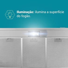 O Depurador e Exaustor Inox Philco 3 Velocidades 150W Possui lâmpada incandescente, prática para iluminar a superfície do fogão, além de trazer sofisticação ao seu ambiente.