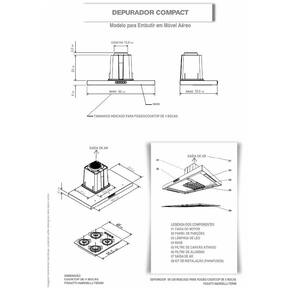 Instalação apenas de Embutir Observação, este modelo deve ser embutido em armário aéreo, acima do cooktop fogão, o depurador é fixado por parafusos no próprio móvel