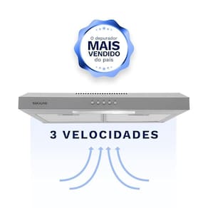 Depurador de Ar Slim 60cm Inox com 3 velocidades, capacidade de sucção de 430m/h, dupla filtragem (carvão ativado e telas em alumínio laváveis), luminária integrada e design slim.Vendido e entregue por WebContinental