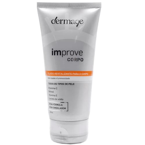 Dermage Improve Corpo 180ml Loção hidratante de uso diário, Improve Corpo proporciona potente hidratação, com rápida absorção e toque seco. Formulado com vitamina C, vitamina E, retinol e Lactato de Sódio, conta com ação antioxidante e anti-idade, protegendo a pele do envelhecimento precoce e atuando na melhora da firmeza, luminosidade e elasticidade.