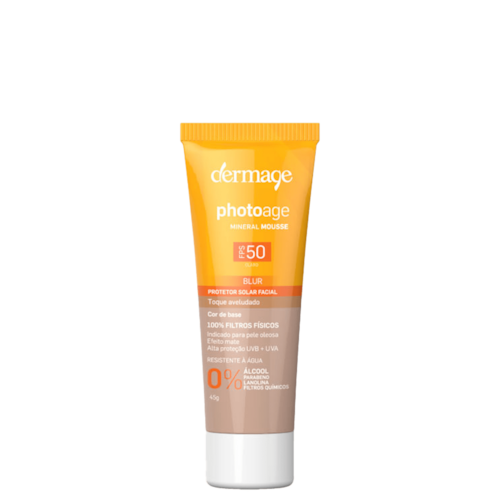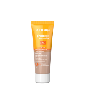 Além de proteger o rosto dos raios solares e luz visível, Protetor Solar Dermage Photoage Mousse FPS 50 conta com ação antioxidante e rejuvenescedora. Disponível nas cores clara e média, também garante boa cobertura e disfarça pequenas manchas e imperfeições da pele.