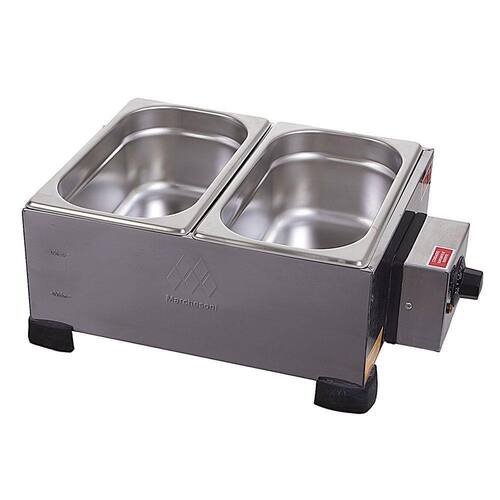As cubas são em aço 304 material indicado para contato com o alimento, além disso, possuem tampas em todos os modelos. O termostato regulável permite que você defina a temperatura ideal para derreter ou manter o chocolate aquecido.