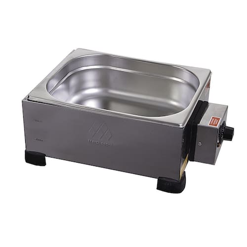 Derretedeira Industrial 1 Cuba DR.2.152 Marchesoni. São ideais para confeitarias, docerias, cafeteiras, sorveterias, buffets, festas e eventos. As Derretedeiras Industriais são fabricas em aço inoxidável e possuem cubas gastronômicas removíveis que facilitam o trabalho. As cubas são em aço 304 (material indicado para contato com o alimento), além disso, possuem tampas em todos os modelos. O termostato regulável permite que você defina a temperatura ideal para derreter ou manter o chocolate aquecido. Podem ser utilizados por estabelecimentos comerciais, pequenos empreendedores e para quem ainda está começando e faz a sua produção de doces em casa. Reservatório removível, aquecimento em banho-maria. ACOMPANHA: Tampa em inox. CAPACIDADE: 1 cuba de 5kg. CONSUMO: 750W/0,75kw/h. PESO: 3,2kg. DIMENSÕES(CxAxL): 42x16x27,5cm. Nossa política de qualidade apoia-se no Sistema de Gestão de Qualidade NBR-ISSO 9001:2008. Produto testado e aprovado pelo INMETRO e que estará sempre pronto para atender as necessidades da sua cozinha. Derretedeira Industrial 1 Cuba DR.2.152 Marchesoni é na Atau.