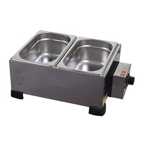 Derretedeira Industrial 2 Cubas DR.2.222 Marchesoni. São ideais para confeitarias, docerias, cafeteiras, sorveterias, buffets, festas e eventos. As Derretedeiras Industriais são fabricas em aço inoxidável e possuem cubas gastronômicas removíveis que facilitam o trabalho. As cubas são em aço 304 (material indicado para contato com o alimento), além disso, possuem tampas em todos os modelos. O termostato regulável permite que você defina a temperatura ideal para derreter ou manter o chocolate aquecido. Podem ser utilizados por estabelecimentos comerciais, pequenos empreendedores e para quem ainda está começando e faz a sua produção de doces em casa. Reservatório removível, aquecimento em banho-maria. ACOMPANHA: Tampa em inox. CAPACIDADE: 2 cubas de 2,5kg. CONSUMO: 750W/0,75kw/h. PESO: 3,48kg. DIMENSÕES(CxAxL): 40,8x15,7x27,5cm. Nossa política de qualidade apoia-se no Sistema de Gestão de Qualidade NBR-ISSO 9001:2008. Produto testado e aprovado pelo INMETRO e que estará sempre pronto para atender as necessidades da sua cozinha. Derretedeira Industrial 2 Cubas DR.2.222 Marchesoni é na OverFrio.