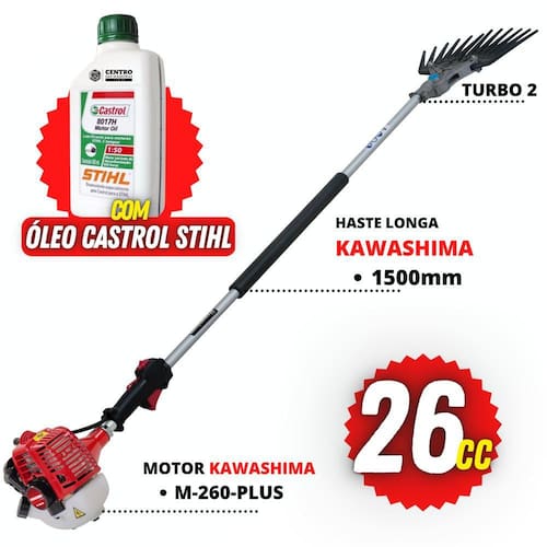 Derriçadeira Premium Kawashima KWD2610T2L com Haste Longa 1500mm Motor Kawashima 25,6cc e Kit Turbo 2 + Óleo Castrol Stihl 500mlASSISTÊNCIA TÉCNICA EM TODO TERRITÓRIO NACIONALPRODUTO COM 6 MESES DE GARANTIAFORTE E ECONÔMICAROBUSTA E COM ESTRUTURA RESISTENTEPEÇAS DE REPOSIÇÃO DE FÁCIL ACESSOEQUIPE DE PÓS VENDAS A DISPOSIÇÃOO braço mecânico do agricultor, a Derriçadeira de Café Premium Kawashima KWD2610T2L, foi desenvolvida para alto desempenho em agilizar e facilitar o trabalho e custos da colheita de café a Linha Premium é equipada com a melhor relação custo benefício. Conta com motor Kawashima Plus de 2 tempos a gasolina e tanque de combustível com capacidade para 0,8L. ESPECIFICAÇÕES TÉCNICAS: Tipo: LateralDiâmetro da Haste: 25mmComprimento da Haste: 1500mm (150cm) LongaEixo cardã: 7x7Modelo do kit derriçador: KD 257-T2Relação: 1:3,8Garras: 12 (2x6)Curso de êmbolo: 10mm Motor: Kawashima Plus M 260-PSTipo do motor: 2 tempos, gasolinaCilindradas: 25,6ccTipo de Carburador: Diafragma, com regulagem Combustivel: Gasolina e óleo 2T (25:1)Capacidade do tanque de combustível: 0,8 LItens Inclusos: 1 Haste Kawashima Premium, 1 Kit Derriçador Nakashi KD 257-T2, 1 Motor Kawashima Plus M 260-PS, 1 Manual de Instrução e 1 Óleo Stihl. Informações AdicionaisA DERRIÇADEIRA É DA MARCA KAWASHIMA, E ACOMPANHA UM ÓLEO 2T DA MARCA CASTROL STIHL.A medida de utilização do Óleo Castrol Stihl com a Derriçadeira Kawashima é de 25:1ANTES DE USAR O ÓLEO É NECESSÁRIO A VERIFICAÇÃO DA DOSAGEM CERTA PARA SUA MÁQUINA, CADA MÁQUINA POSSUÍ UMA DOSAGEM DIFERENTE, CASO CONTRÁRIO PODE ACARRETAR AO MAL FUNCIONAMENTO DA MÁQUINA E ATÉ FUNDIR SEU MOTOR. VERIFIQUE NO MANUAL DE SUA MÁQUINA. Este lubrificante possui um elevado poder detergente, que evita o acúmulo de resíduos de carbono, além de:Limpeza mais efetiva do motor Reduz o acúmulo de resíduos de carbono, assim como a formação de vernizes e de lacas, na zona dos anéis do pistão, reduzindo o risco de travamento do motor.Aditivação anticorrosiva, protegendo as partes internas do motor.Ação antidesgaste Maior proteção contra o desgaste das partes móveis dos motores, mesmo em situações severas de uso.Formação de cinzas. Sua tecnologia exclusiva evita a formação de cinzas na cabeça do pistão, na janela de exaustão e nas velas, e prevenindo a pré-ignição.
