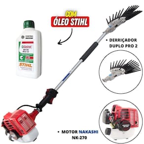Itens Inclusos: 1 Haste Profissional Nakashi, 1 ;Kit Derriçador Nakashi KD 257-D2, 1 Motor Nakashi NK 270, 1 ;Manual de Instrução e 1 Óleo Stihl. ;