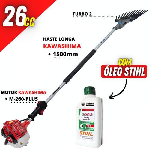 Derriçadeira Premium Kawashima KWD2610T2L com Haste Longa 1500mm Motor Kawashima 25,6cc e Kit Turbo 2+Óleo Castrol Stihl 500ml