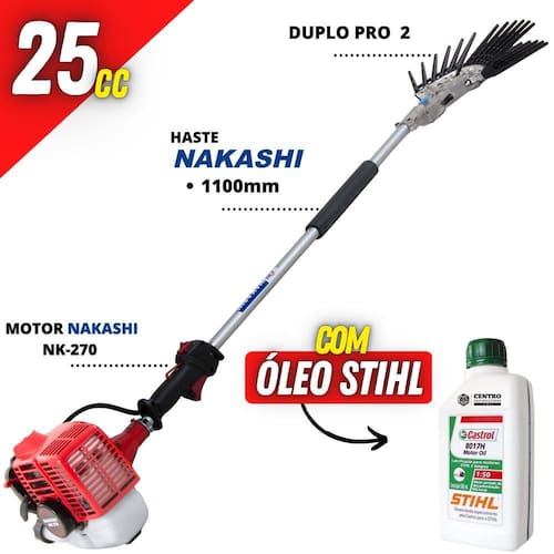 Derriçadeira Profissional Nakashi DD2L270N com Haste 1100mm Motor Nakashi 25,4cc e Kit Duplo Pro 2 + Óleo Castrol Stihl 500ml