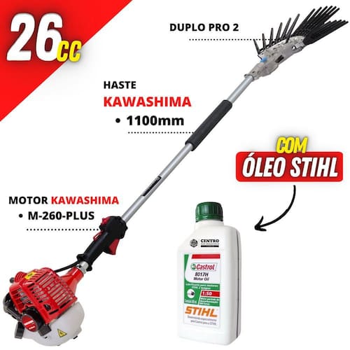 Derriçadeira Premium Kawashima KWD2610D2 com Haste 1100mm Motor Kawashima 25,6cc e Kit Duplo Pro 2 +Óleo Castrol Stihl 500ml