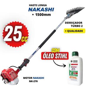 Derriçadeira Profissional Nakashi DT2L270NL com Haste Longa 1500mm Motor Nakashi 25,4cc e Kit Turbo 2 + Óleo Castrol Stihl 500ml