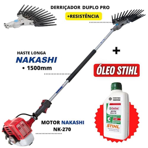 Derriçadeira Profissional Nakashi DDL270NL com Haste Longa 1500mm Motor Nakashi 25,4cc e Kit Duplo Pro + Óleo Castrol Stihl 500ml