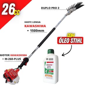 Derriçadeira Premium Kawashima KWD2610D2L com Haste Longa 1500mm Motor Kawashima 25,6cc e Kit Duplo Pro 2 +Óleo Castrol Stihl 500ml