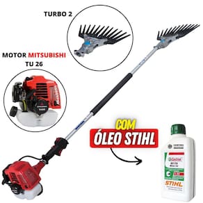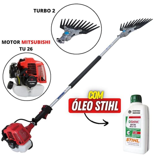 Derriçadeira Profissional Nakashi DL262MT2L com Haste Longa 1500mm Motor Mitsubishi TU-26 de 25,6cc e Kit Turbo 2 + Óleo Castrol Stihl 500ml
