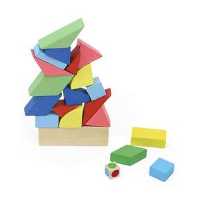 Jogo para desenvolver habilidades motoras e estratégicas A cor do dado indica a a próxima peça que deve ser empilhada sobre a base. O objetivo é não deixar a torre cair. Pode ser jogado individualmente ou em dupla. Dica: Para tornar o desafio ainda maior, experimente colocar as peças usando apenas uma das mãos. 20 blocos geométricos e 1 dado. Material utilizado: madeira maciça. Acabamento: tinta atóxica. Idade recomendada: 5 a 12 anos. CE-BRI/BRICS 00811-18 NM300/2002 - OCP 0098 Ean: 0751320459848