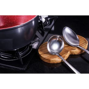 Descanso de colher em madeira teca, com acabamento em cera de abelha que valoriza a aparência natural da madeira e contribui para a sua conservação.
