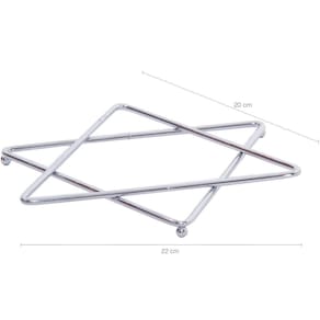 Pequenos cuidados com seu lar fazem toda a diferença. #Descanso De Mesa #Material Resistente #Design Inovador Garantia: 1 Ano / Peso: 175g / Cor: Cromado / Ref: 31130 Dimensões: 22cm (C) x 20cm (L) x 2cm (A) Cuidados: Não lavar com materiais abrasivos Comporta: Uma panela. Material: - Aço cromado: A matéria prima utilizada no produto garante o aspecto brilhante por muito tempo, sendo resistente a raios UV. Os descansos de panela são utensílios indispensáveis para sua cozinha. Esse suporte evita que sua mesa ou bancada sejam danificados por alta temperatura das panelas e utensílios quentes. O suporte possui um design moderno e inovador que além de proteger sua mesa ainda irá compor a decoração de sua cozinha.