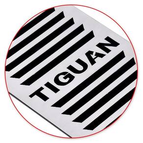 sobre o produto: pelo fato de ser produzido em aço inox inoxidável, esse descanso de pé é super resistente e não enferruja. A instalação é fácil e pode ser feita em casa em poucos minutos. A fixação do descanso de pé personalizado é feita com uma fita dupla face 3m, na parte plástica ou fita de tiras aderentes fixado ao tapete do veículo, deixando o veículo com um visual personalizado e diferenciado, sem causar danos onde o acessório será instalado. Especificações: material em aço inox 304. Espessura 2 mm. Gravação em baixo relevo na cor preta. Acabamento em aço escovado de alta qualidade. Fixação resistente com fita dupla face 3m. Fácil instalação. Largura: 9,5 cm. Comprimento: 30 cm. Conteúdo da embalagem: 01 - descanso de pé. Compatível com: volkswagen tiguan 2018 à 2022. compatível para todas as versões
