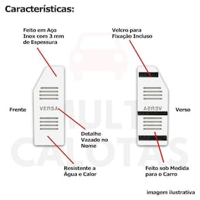 Descanso de Pé NISSAN VERSA 2016 a 2020 Aço Escovado Prata Permitindo que faça viagens mais confortáveis e com menor cansaço para suas pernas. Descanso de Pé de Aço Inox para o Nissan Versa 2016 a 2020. CARACTERÍSTICAS: - Fabricado em Aço Inoxidável - Resistente a água e calor - Fixação: por tiras aderentes (Incluido) - Cor: Prata - Referência: DP1056SV - Marca: Sofisticar ITENS INCLUSOS: - Um (1) Descanso de Pé com tiras aderentes Incluso. DIMENSÕES - Comprimento: 22 cm - Largura: 8 cm - Espessura: 0,3 cm INSTALAÇÃO A instalação é feita de forma simples, podendo ser feita por você mesmo. GARANTIA Garantia de 30 dias para defeitos de fabricação. (em até 3 dias úteis, em caso de boleto) POLÍTICA DE TROCA Sempre estamos interessados em sua satisfação. Caso não receba o produto exatamente como no anúncio, com algum defeito ou avaria no transporte, Você poderá trocar e devolver a qualquer momento, sem pressa, sem prazo e principalmente sem custos (desde que o produto esteja sem uso e na mesma condição da data da compra). No caso de devolução por compra de tamanho errado, desistência ou mudança de intenção, Da mercadoria nova.