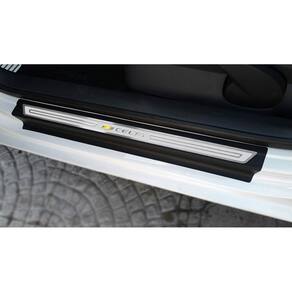 Fabricado em aço inox 304 o kit soleiras, vinil, pedaleiras e descanso de pé além de ajudar a proteger o local onde há o desgaste devido o calçado ficar o tempo todo esfregando, deixará o interior do veículo personalizado e com muito mais estilo.