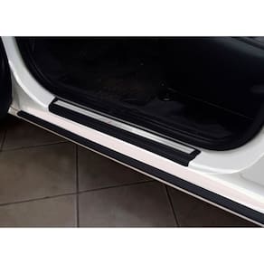 Fabricado em aço inox 304 o kit soleiras, vinil, pedaleiras e descanso de pé além de ajudar a proteger o local onde há o desgaste devido o calçado ficar o tempo todo esfregando, deixará o interior do veículo personalizado e com muito mais estilo.