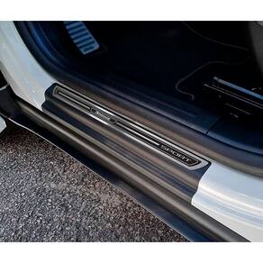 Fabricado em aço inox 304 o kit soleiras, vinil, pedaleiras e descanso de pé além de ajudar a proteger o local onde há o desgaste devido o calçado ficar o tempo todo esfregando, deixará o interior do veículo personalizado e com muito mais estilo.