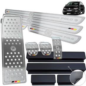 Fabricado em aço inox 304 o kit soleiras, vinil, pedaleiras e descanso de pé além de ajudar a proteger o local onde há o desgaste devido o calçado ficar o tempo todo esfregando, deixará o interior do veículo personalizado e com muito mais estilo.