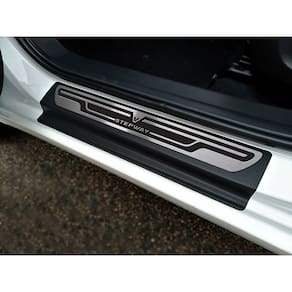 Fabricado em aço inox 304 o kit soleiras, vinil, pedaleiras e descanso de pé além de ajudar a proteger o local onde há o desgaste devido o calçado ficar o tempo todo esfregando, deixará o interior do veículo personalizado e com muito mais estilo.