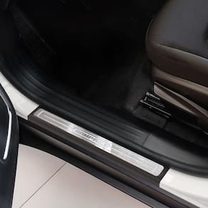 Fabricado em aço inox 304 o kit soleiras, vinil, pedaleiras e descanso de pé além de ajudar a proteger o local onde há o desgaste devido o calçado ficar o tempo todo esfregando, deixará o interior do veículo personalizado e com muito mais estilo.
