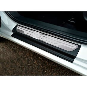 Fabricado em aço inox 304 o kit soleiras, vinil, pedaleiras e descanso de pé além de ajudar a proteger o local onde há o desgaste devido o calçado ficar o tempo todo esfregando, deixará o interior do veículo personalizado e com muito mais estilo.