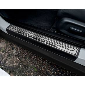 Fabricado em aço inox 304 o kit soleiras, vinil, pedaleiras e descanso de pé além de ajudar a proteger o local onde há o desgaste devido o calçado ficar o tempo todo esfregando, deixará o interior do veículo personalizado e com muito mais estilo.