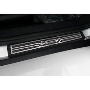 Fabricado em aço inox 304 o kit soleiras, vinil, pedaleiras e descanso de pé além de ajudar a proteger o local onde há o desgaste devido o calçado ficar o tempo todo esfregando, deixará o interior do veículo personalizado e com muito mais estilo.