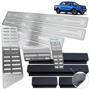 Fabricado em aço inox 304 o kit soleiras, vinil, pedaleiras e descanso de pé além de ajudar a proteger o local onde há o desgaste devido o calçado ficar o tempo todo esfregando, deixará o interior do veículo personalizado e com muito mais estilo.