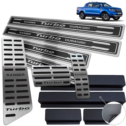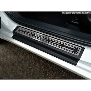 Fabricado em aço inox 304 o kit soleiras, vinil, pedaleiras e descanso de pé além de ajudar a proteger o local onde há o desgaste devido o calçado ficar o tempo todo esfregando, deixará o interior do veículo personalizado e com muito mais estilo.