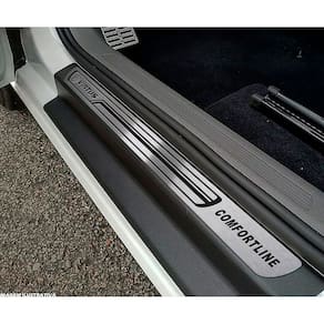 Fabricado em aço inox 304 o kit soleiras, vinil, pedaleiras e descanso de pé além de ajudar a proteger o local onde há o desgaste devido o calçado ficar o tempo todo esfregando, deixará o interior do veículo personalizado e com muito mais estilo.